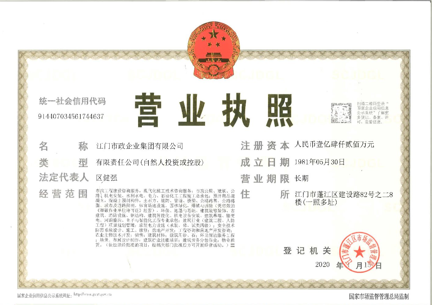江门市政集团有限公司营业执照